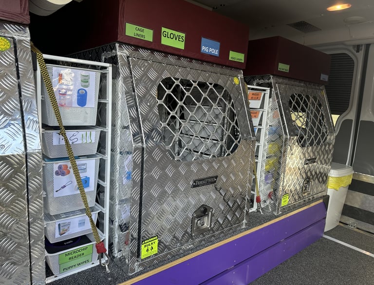 The ambulance is fitted with oxygen and monitoring equipment if necessary. All our cages have cameras, so the driver or passenger can observe the pet while travelling. We can even arrange for a Vet Nurse to be onboard for the journey if necessary (extra fee applies).